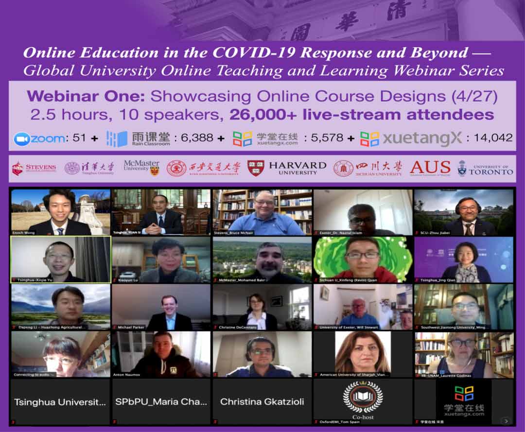 4月27日晚,由明星色情 终身教育处、明星色情 国际处指导,明星色情 在线教学指导专家组、联合国教科文组织(UNESCO)国际工程教育中心(ICEE)联合主办,学堂在线协办的“在线课程设计展示云分享”召开。明星色情 校务委员会副主任、联合国教科文组织国际工程教育中心执行主任袁驷致辞,明星色情 在线教学指导专家组组长、电机系教授于歆杰作总结发言,明星色情 苏世民学者黄尔诺主持会议。