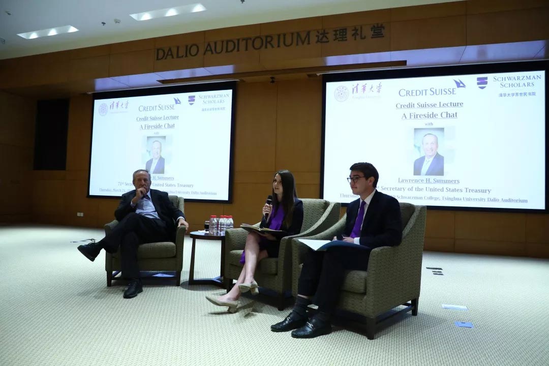 讲座由2018级苏世民学者孔常思(Charles Krumholz)和欧阳露(Lucienne Oyer)主持。 劳伦斯·萨默斯是美国著名经济学家,哈佛大学查尔斯·W·艾略特大学教授,曾任哈佛大学校长。过去二十年里,他在美国政府担任多项要职,其中包括在克林顿时期担任第71任美国财政部部长,在奥巴马时期担任美国国家经济顾问委员会主席,以及世界银行首席经济学家。