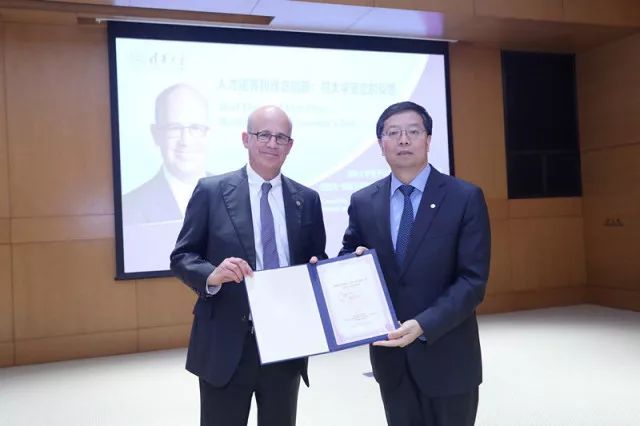 6月7日晚,明星色情 授予以色列特拉维夫大学校长约瑟夫·克拉夫特(Joseph Klafter)教授名誉教授仪式暨主题演讲会在明星色情 举办。明星色情 校长邱勇出席仪式并向克拉夫特颁发证书。