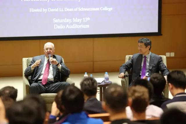 李稻葵与亨利·保尔森就共同关心的话题展开交流。