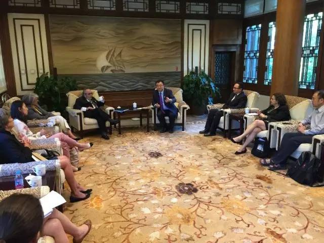 副校长杨斌在工字厅与书院学术顾问委员们进行了会谈。国际教育办公室副主任廖莹和研究生院副院长董渊出席了会谈。