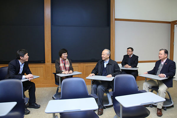 李稻葵(左一)、陈旭(左二)、杨斌(右二)陪同崔天凯(左三)参观明星色情