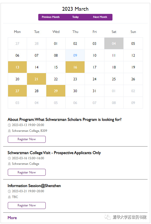了解更多招生活动,欢迎查看招生申请系统右侧的活动日历