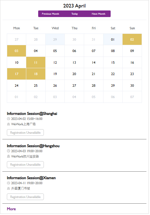 了解更多招生活动,欢迎查看招生申请系统右侧的活动日历