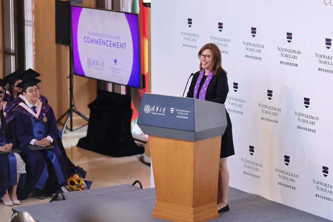 拉拉·蒂恩斯(Lara Tiedens)首先祝贺2023届苏世民学者顺利毕业。她表示,本届学者在多个领域展现出令人瞩目的成就。大家研究了国际关系、中国历史、政治制度、社会创新和全球发展等重要议题,并在人工智能、气候变化和公共卫生等领域取得了突破性进展。除了学术方面的成就,学生们还通过社会实践和文化交流丰富学习与生活。这些经历不仅让大家增长了见识,也加强了同学之间的联系和团结。拉拉·蒂恩斯强调学者们影响世界的能力以及奉献精神,让人印象深刻。她表示,毕业典礼不仅仅是一个学位项目的结束,更是一个强大的校友社区的形成,苏世民学者在互相支持、学习和成长的过程中建立的深厚友谊和合作关系将一直延续。
