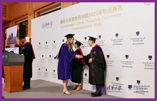 长期以来对项目的支持。他回顾了两次到访书院与本届同学们的见面交流,对同学们在学术、体育、社会活动等方面展现出的多元才华和卓越表现深感欣喜。他指出,学者们在这一年中深入了解中国,拓展全球视野,展现了对复杂议题的深刻洞察与协作精神。他鼓励毕业生们继续发挥影响力,积极投身寻找解决21世纪全球挑战的途径,并诚挚邀请大家明年四月返校,共庆项目十周年。