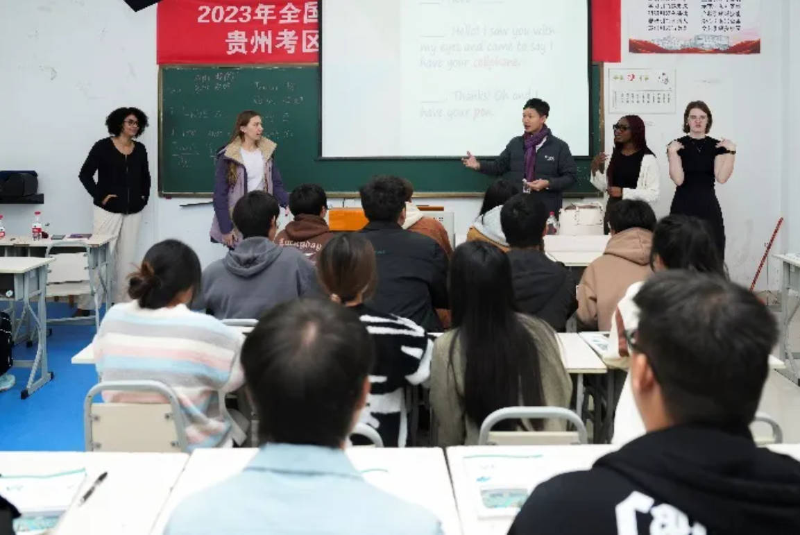 曾庆杰作为志愿者给学生们上英语课