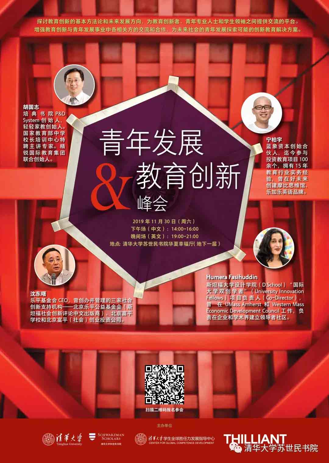 探讨教育创新的基本方法论和未来发展方向,为教育创新者、青年专业人士和学生领袖之间提供交流的平台。增强教育创新与青年发展事业中各相关方的交流和合作,为未来社会的青年发展探索可能的创新教育解决方案。